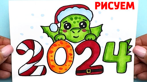 Новогодний Рисунок на Новый Год ДРАКОНА Как нарисовать Новогодние Цифры 2024 Рисунки Юльки 2024