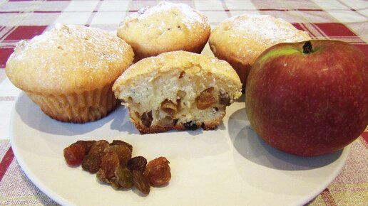Вкуснейшие мягкие кексы, возбуждающие аппетит. Кексы на кефире с изюмом и яблоком, быстро и просто