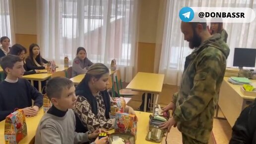 Штурмовики батальона "Борз" побывали в одной из школ ДНР