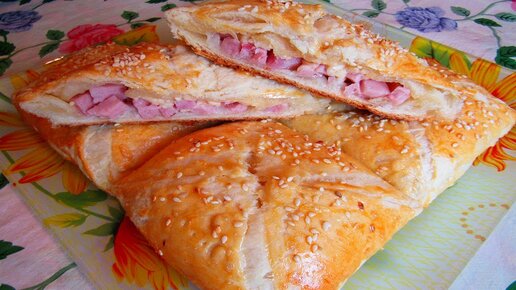 Воздушные слоеные конвертики с ветчиной и сыром. Сытная закуска на работу и в дорогу. Готовится быстро и просто