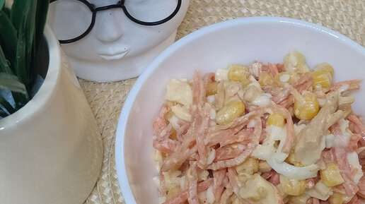 Салат с кукурузой, корейской морковкой и копченым сыром
