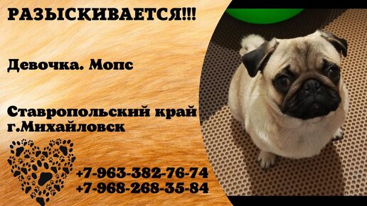 Пропала собака! Девочка, мопс. Ставропольский край, г.Михайловск