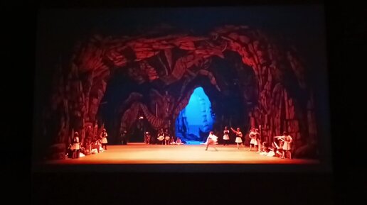 Вот так я дома смотрю балет "Корсар" из Большого Театра. Домашний кинотеатр - экран диагональ 3 метра, шестиканальный звук Dolby Digital.