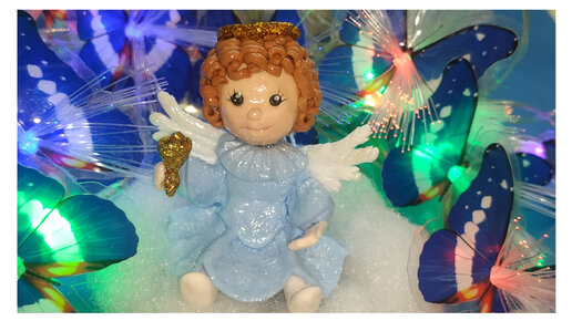 Рождественский ангелочек на облачке, из легкой глины.