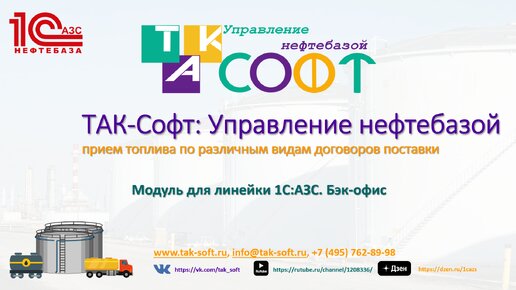 ТАК-Софт:Управление нефтебазой для 1С:АЗС (бэк-офис). Прием топлива по разным видам договоров поставки