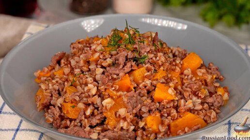 Вкусное соединение в сковороде. Гречка с фаршем и тыквой