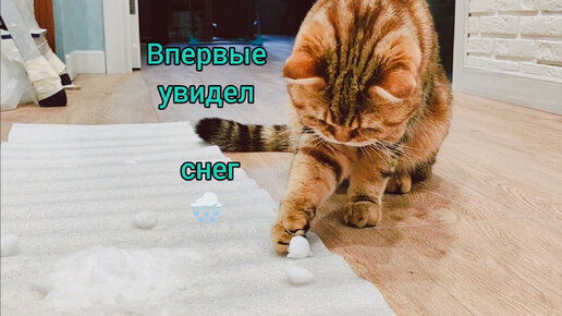 Снегопад за окном. Принесли снега коту. Реакция кота на снег.