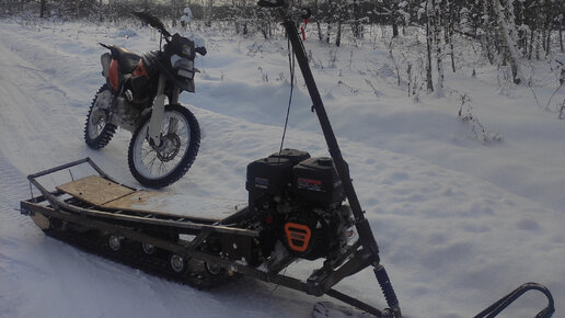 Самодельный снегоход снегокат и Минск XR 250, по зимним дорогам