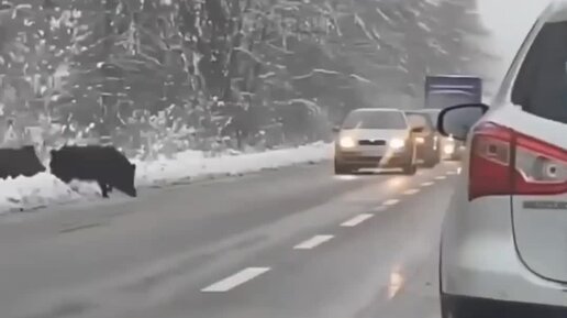 СЕМЕЙСТВО КАБАНОВ ПЕРЕБЕГАЕТ ДОРОГУ...