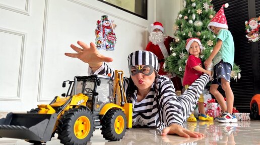 Mark play as policemen catches a thief and saves a gift for Christmas