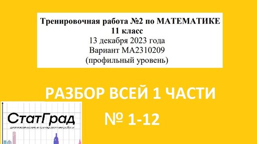 Разбор 1 части тренировочной работы № 2 СтатГрад от 13 декабря 2023 года по профильной математике. Вариант МА2310209.
