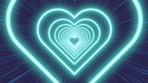 Неоновый туннель из синих сердец на темно-синем полосатом фоне. Цикличное видео. Футаж