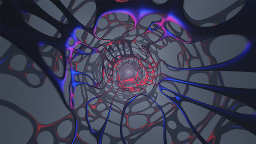 Туннель с красными и синими нейронных сетей. Фантастическая абстракция. Цикличное видео. Футаж