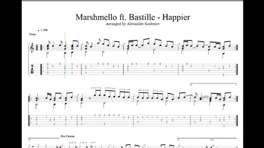 Marshmello ft. Bastille - Happier (Guitar Tabs)