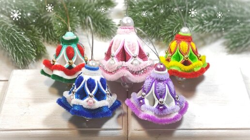 Очень милые и нежные новогодние колокольчики для ёлочки. Ёлочные игрушки своими руками из фоамирана и синельной проволоки.