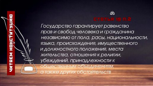 Государство гарантирует равенство прав и свобод человека и гражданина (Статья 19 п.2 Конституции РФ)