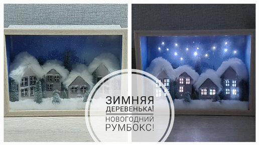 Новогодний румбокс "Зимняя деревенька" с подсветкой!