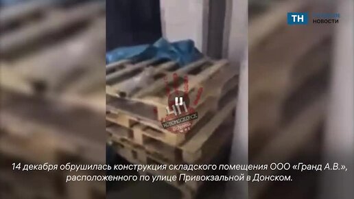 Момент обрушения крыши складского помещения в Донском с рабочими внутри