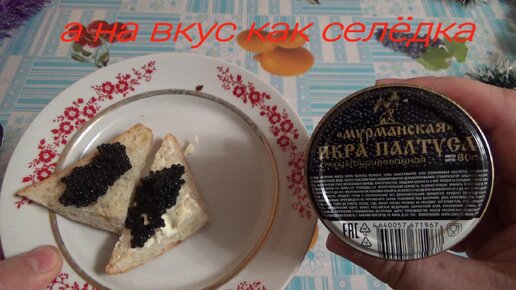 мурманская икра палтуса структурированная 109 рублей за 80 грамм,пробую черную икру,ООО лунское море.икра палтуса черного из магазина победа