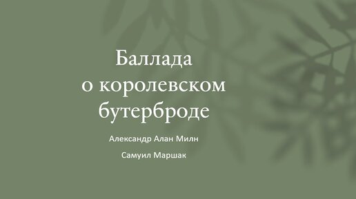 А. А. Милн, С. Я. Маршак. Баллада о королевском бутерброде