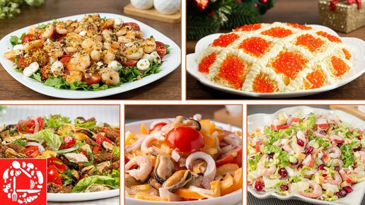 До чего же они ВКУСНЫЕ! 5 Салатов с Морепродуктами на Праздничный стол. Новый Год 2024