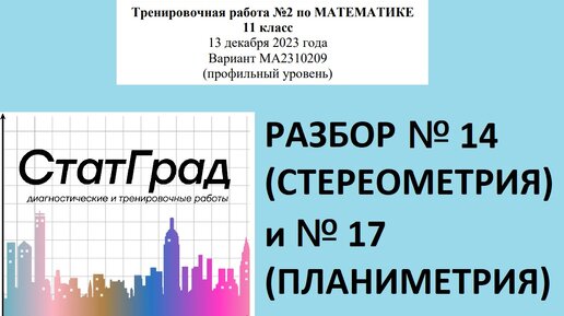 Разбор № 14, № 17 тренировочной работы № 2 СтатГрад от 13 декабря 2023 года по профильной математике. Вариант МА2310209.