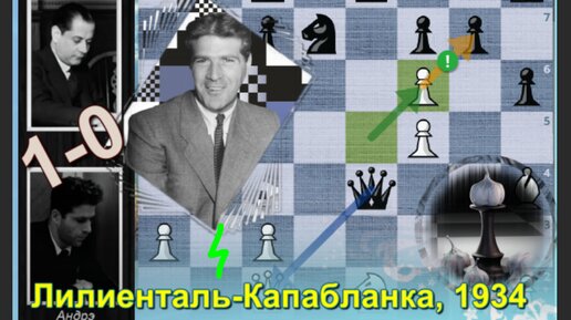 "Гигант Андрэ": шахматная история о том как Андрэ Лилиенталь одолел белым цветом Хосе Капабланку в защите Нимцовича, 1-0 (Гастингс, 1934)