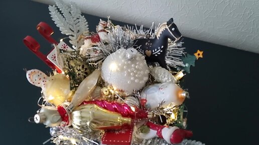 Новогоднее украшение. Хрустальная ваза с ёлочными игрушками