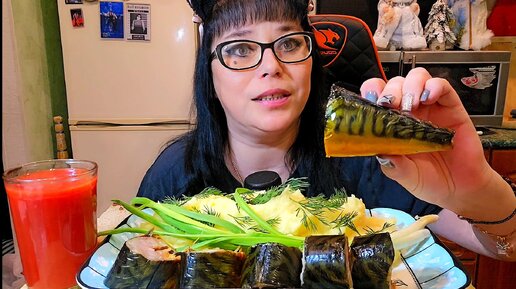 Мукбанг | Копчёная скумбрия и пюрешка. Обжорчик. Коменты от злыдней меня только смешат 😆