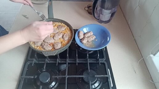 Перловка с котлетами в одной сковороде. Купили говядину на зиму, с голоду не умрём 😉