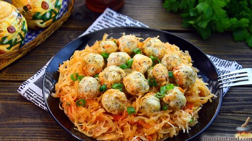 Капустное ассорти с аппетитными шариками. Капуста, тушенная с тефтелями