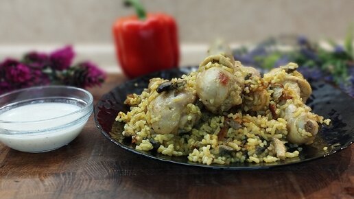 Необычный способ приготовления куриных голеней с рисом в духовке.