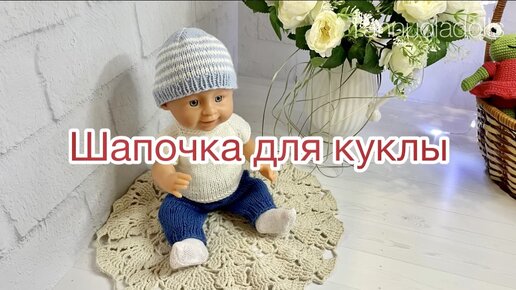 Шапочка для куклы спицами. Одеваем пупса. Часть 5.