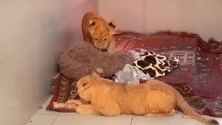 ПЕРВЫЕ МИНУТЫ ВМЕСТЕ. Львята осторожны! Асада и Шерхан присматриваются друг к др
