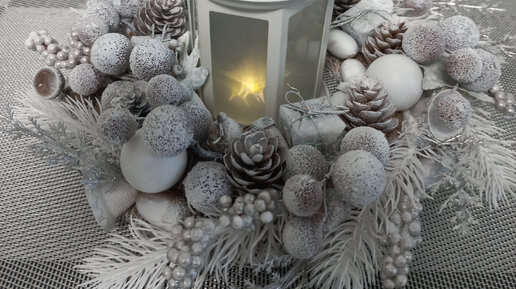 Белоснежное украшение новогоднего стола своими руками.Фонарик и венок*Легко и воздушно!