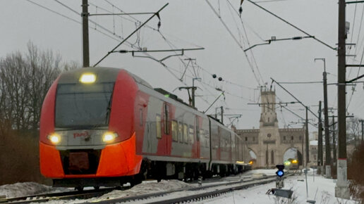 "Молчаливая!" Электропоезд "Ласточка" ЭС2Г - 124 на ст.Новый Петергоф, дек.2023г.