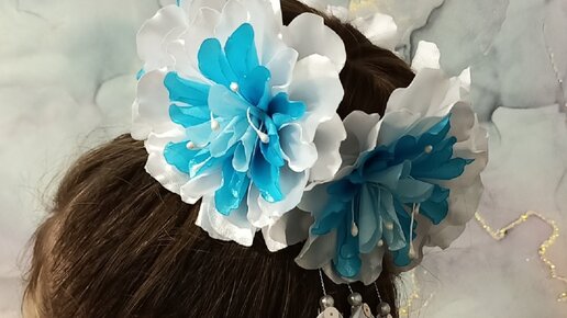 Бант- резинка на пучок "Лазурь".DIY