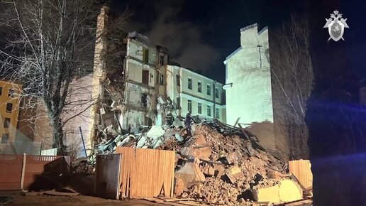 Сотрудники СК России работают на месте обрушения расселенного дома в Петербурге