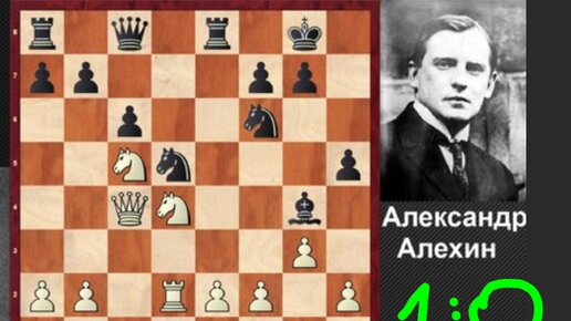 Вот так легко и непринужденно маэстро Алехин уверенными шагами переиграл Рабиновича белым цветом в Баден-Бадене, 1925, 1-0, будапештская