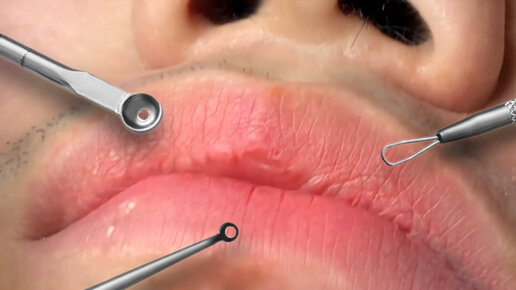 Прыщавые ГУБЫ и МЕЖБРОВКА - боремся с высыпаниями (механическая чистка лица крупным планом)