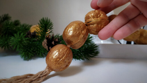 Не выкидывайте скорлупу от грецких орехов, ведь из неё можно сделать прекрасную новогоднюю гирлянду.