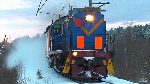 Уборка снега во главе с ТЭМ2-5052, ПОМ 1М "Ветерок" и 2ТЭ116-1255 секция А со снегоуборочной машиной СМ-2М