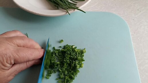 Готовлю салат из зелёного лука (вырос на подоконнике) 😋
