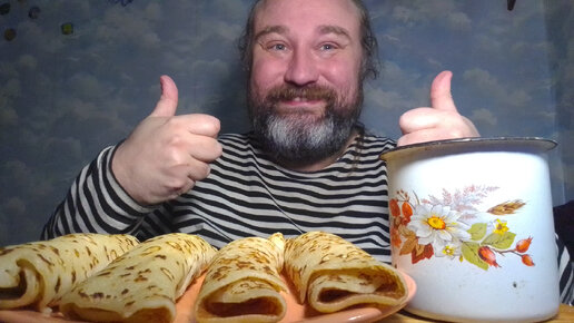 Блинчики с мясом и творогом запиваю чайком. Аминазин в психиатрии - наше всё. Мукбанг. Обжор. Еда на камеру.