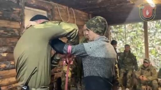 "Док" из бригады "Пятнашка" учит бойцов, как действовать при ранении в грудную клетку, живот, шею.