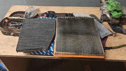 Вот так выглядят забитые воздушные фильтры двигателя и салона на форде транзите 20 года. Про авто. Как обслужить автомобиль перед зимой.