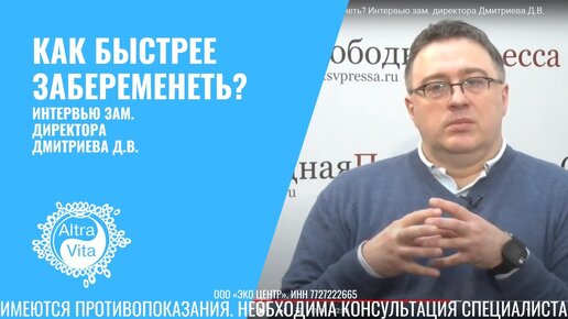 Как быстрее забеременеть. Интервью зам. директора клиники АльтраВита Дмитриева Д.В.
