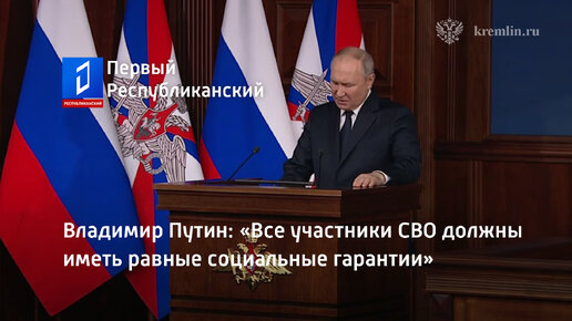 Владимир Путин: «Все участники СВО должны иметь равные социальные гарантии»