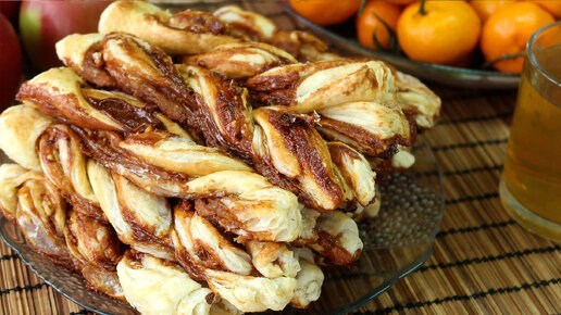Косички из слоеного теста с вареной сгущенкой. Быстрая выпечка к чаю