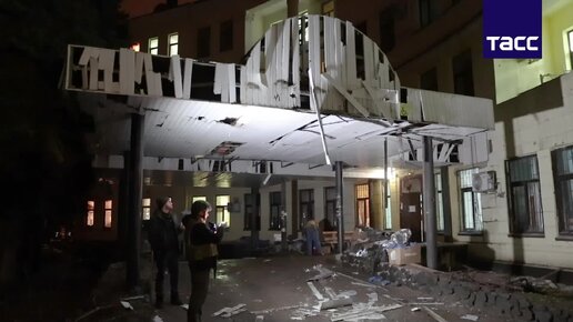 Последствия обстрела республиканского травматологического центра (РТЦ) в Донецке